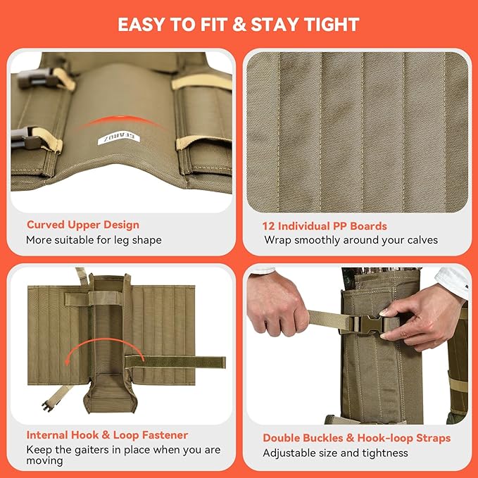 • 💪STRONG STRUCTURE & MATERIAL: Made from 1000D Oxford and 12 separated PP boards, the snake guards provide robust defense against snake bites, which are durable and suitable for both men and women, offering effective protection.
