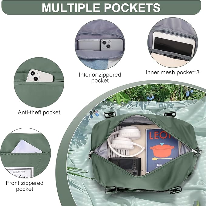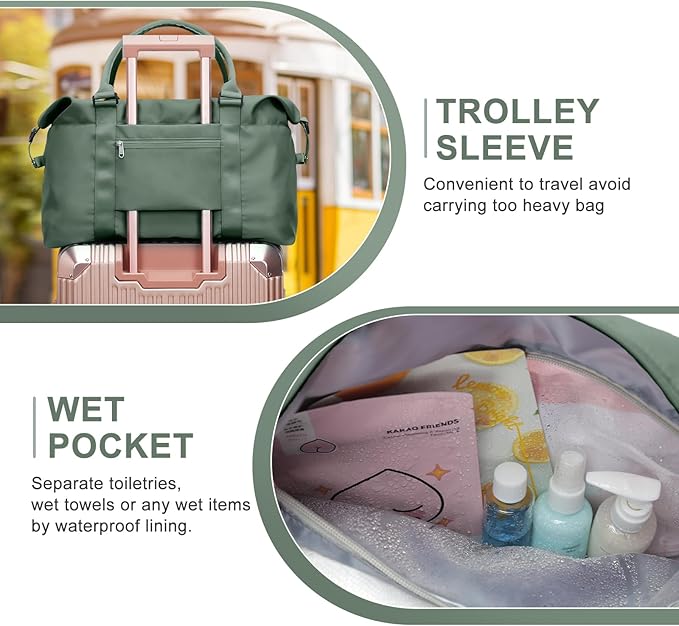 Womens travel bags, weekender carry on for women, sports Gym workout duffel bag, overnight shoulder Bag fit 15.6 inch Laptop (Large, Olive Green)