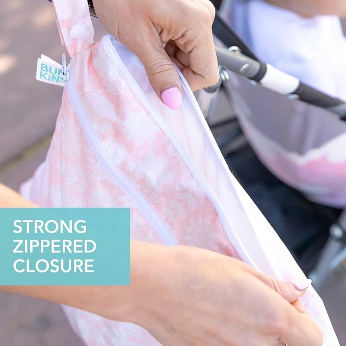 Bumkins Waterproof Wet Dry Bag for Baby, Travel, Swim Suit, Cloth Diapers, Pump Parts, Pool, Beach, Gym Clothes, Toiletry, Hook to Stroller, Daycare, Zipper Reusable Wetdry Packing Pouch, Floral Gray