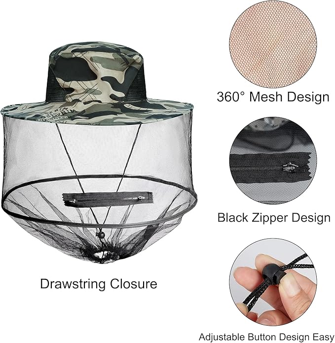 - 360 Degree Face Mesh Design: Mesh design can effectively protect from mosquito disturbing and biting. There is a black zipper on the mesh (you need to cut the opening by yourself) and it is convenient for drinking or eating without taking off the hat.