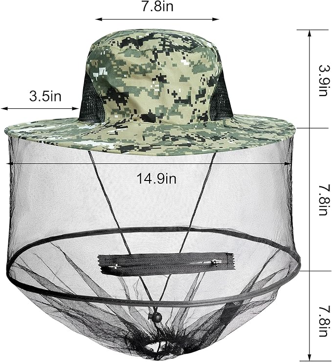 - Mesh Hat Size: head circumference: 22.4-24.8 inches; hat depth: 3.9 inches; veil length: 15.6 inches; hat brim width: 3.5 inches. Suitable for most heads, unisex and comfortable to wear.