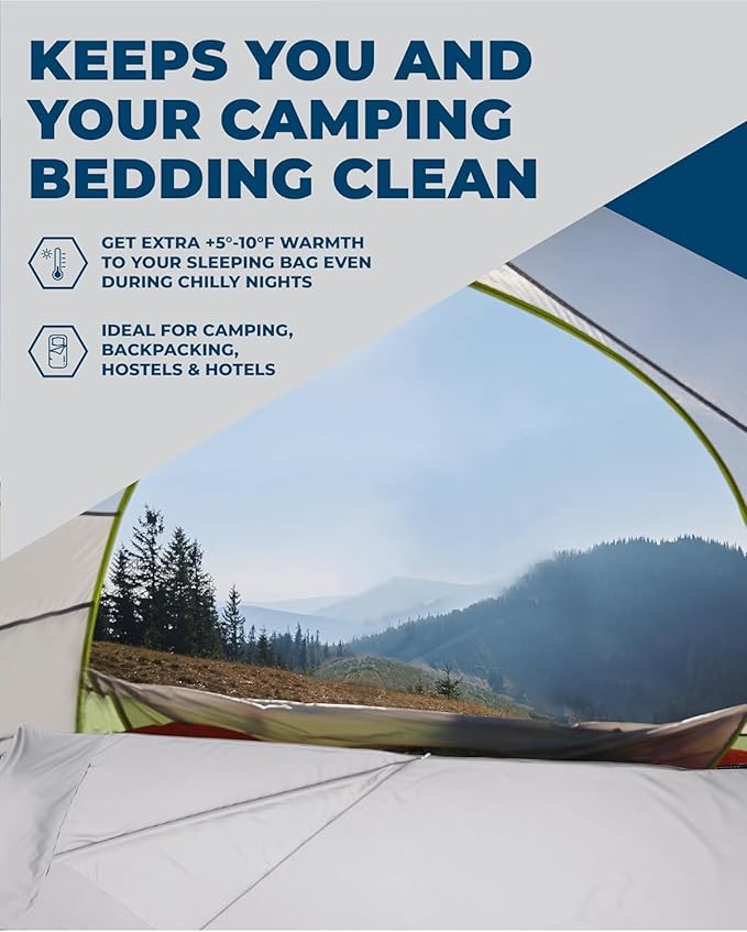 • COZY AND BREATHABLE: The new microfiber version is the perfect hiking gear gift for anyone who loves traveling and camping but misses the feeling of sleeping in their own bed. This is because the cotton feel material helps to maintain a warm and cozy feeling all year around.