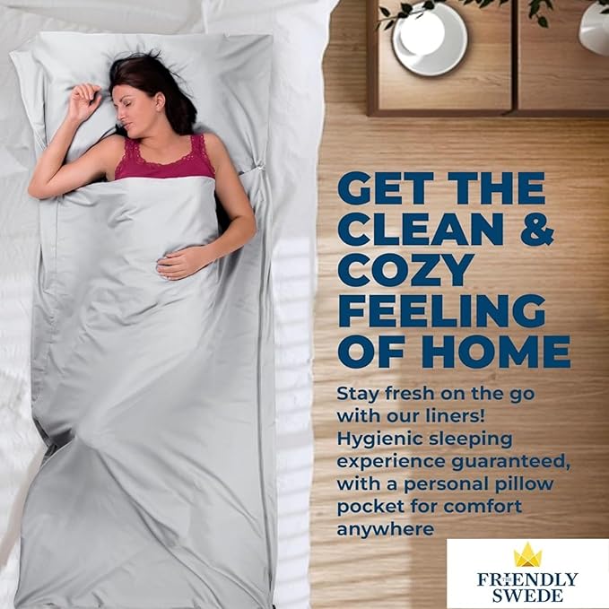 The Friendly Swede Sleeping Bag Liner — Ultralight Polyester or Cold Weather Microfiber Adult Sleep Sack; Thin Travel Sheets for Hotel; Camping Sheets; Travel Sleeping Bag with Pocket-Size Stuff Sack