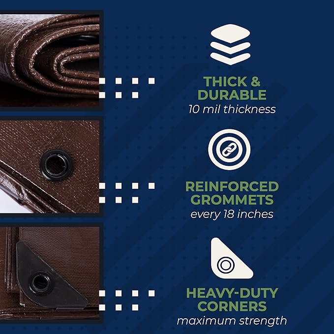 - Tear Proof: Our brown weatherproof tarps is also tear proof. The thickness of it makes it a heavy duty outdoor tarp made to last the toughest environments.
