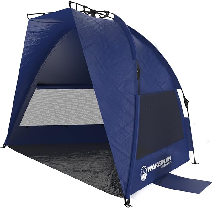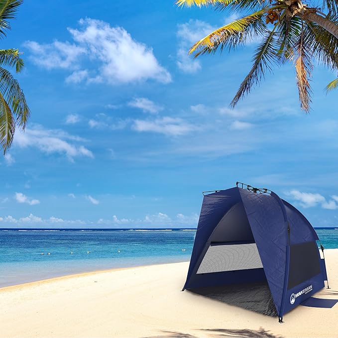 Pop Up Beach Tent Sun Shelter for Shade with UV Protection, Water and Wind Resistant, Instant Set Up and Carry Bag by Wakeman Outdoors, Navy, 55" x 87" (153133NYX)