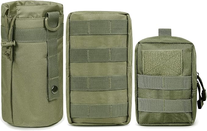 Gogoku 3 Pack Molle Pouch Combo Water Bottle Pouch Holder Tactical Molle Pouches Compact Utility Waist Bag Pack