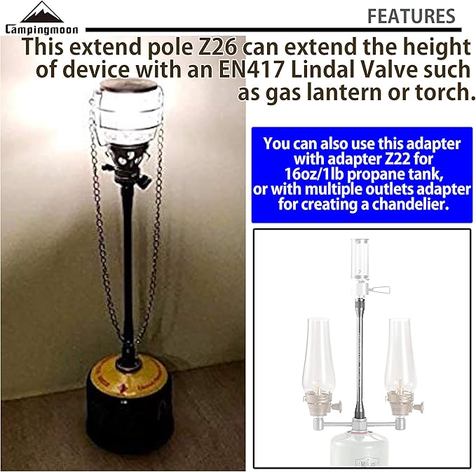 • This extend pole Z26 can extend the height of device with an EN417 Lindal Valve such as gas lantern or torch.