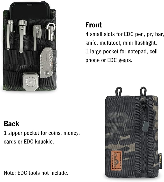 - 【Separate Pocket Design】 Put all your gears in different pockets, perfect storage space, plenty of room for everything you need daily carry, keep your pockets organized. EDC organizer pouch effectively organizes tools and prevents tools from scratching the pocket. And pocket edc organizer can be clipped on any belt.