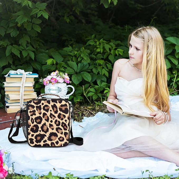 - ☑ CONVENIENT: The leopard lunch bag you need for carrying food, snacks, lunch to school, office, work, and on the go. This sturdy reusable leopard lunch box school cooler is uniquely built to meet all your daily lunch, meal prep, or snacking need.WARNING:CHOKING HAZARD -- Small parts. Suitable for all people over 3 years old.
