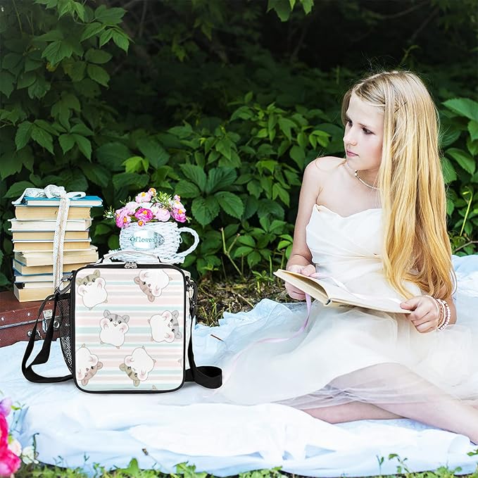 Pardick Cute Hamster Lunch Bag for Girls Boys,Hamster Insulated Lunch Box Kids with Adjustable Shoulder Strap,Waterproof Students Lunch Tote Cooler Bag for School Picnic Travel Outdoor