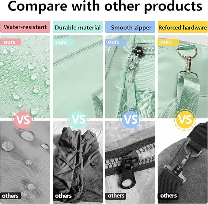 - DRY WET SEPERATED DESIGN & SHOE COMPARTMENT: The high density waterproof pocket can help you to divide wet clothes, towels, shampoo or cold drinks. Built-in shoe compartment keeps your shoe storage private and fresh. Additional storage pockets to organize your items and necessities.