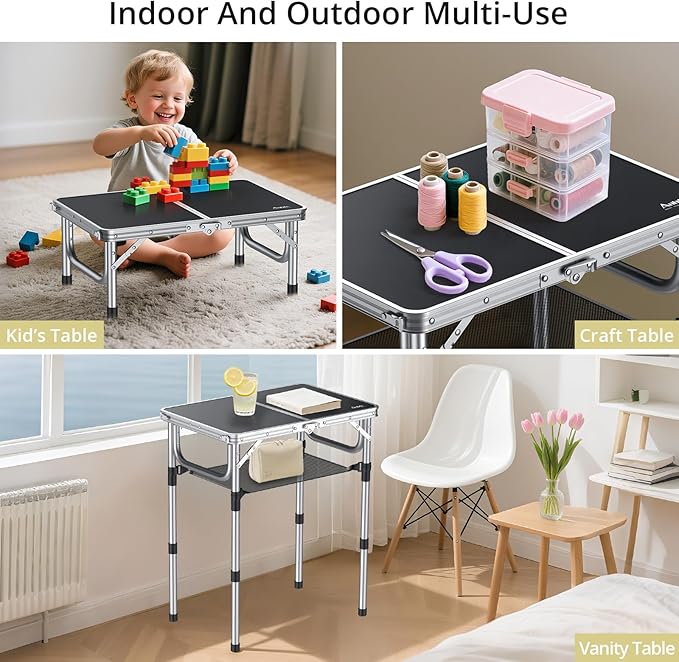 - Multifunctional Table for Various Occasions: This camping folding table is perfect for outdoor and indoor use. It can be used as BBQ grill side table, picnic table, card games table, serving table for dining, working and study table for adult and kids, fishing table