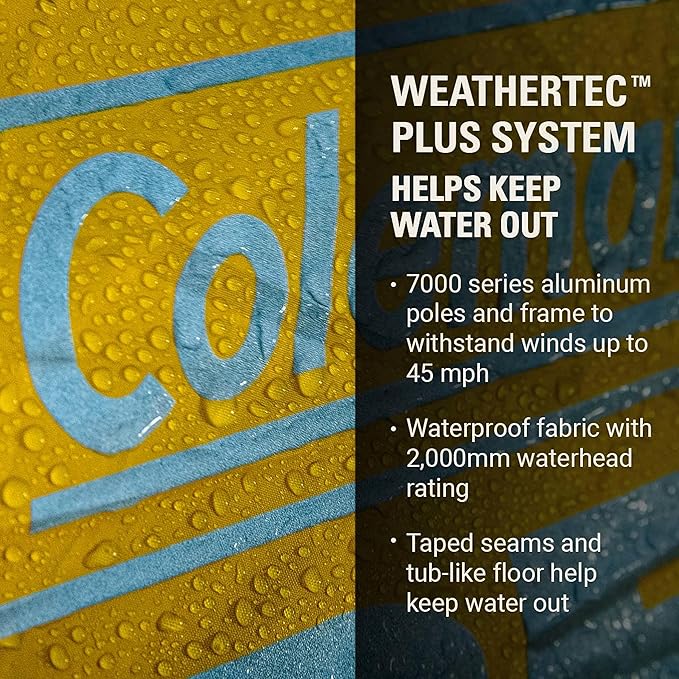 - Wind and Rain Protection: WeatherTec Plus system can withstand winds up to 45 mph; waterproof fabric with a 2,000mm waterhead rating.