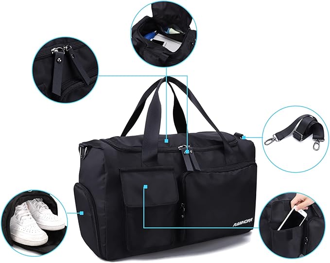 RAMHORN Travel Duffel Bag Gym Sports Luggage Bags Water Resistant Weekender Bag with Wet Pocket and Shoes Compartment Black