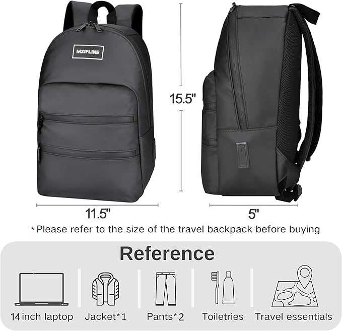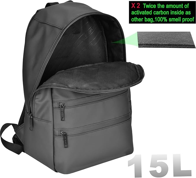 Small Backpack Bag-Water Resistant Daypack Travel bag with Activated Carbon Lined for Men & Women Travel (Black)