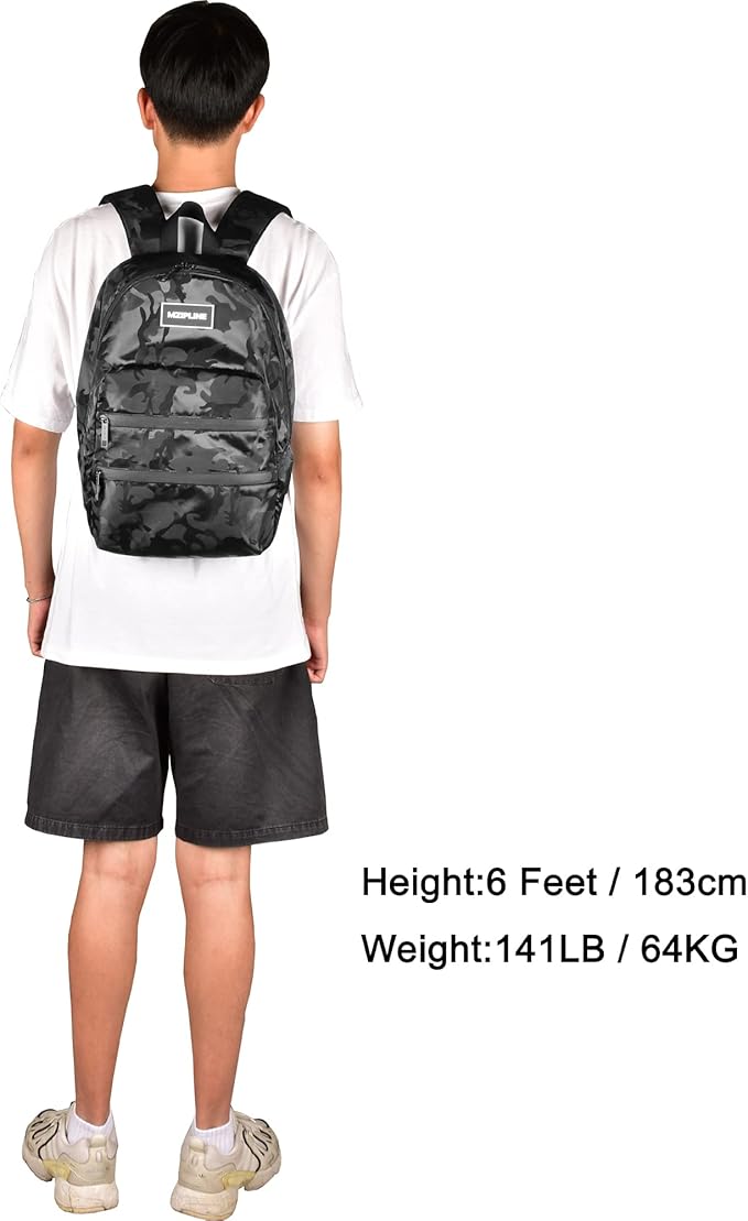 • 【Water Resistant Fabric】Casual daypack made by Waterproof and durable camouflage nylon exterior material, very light weight backpack