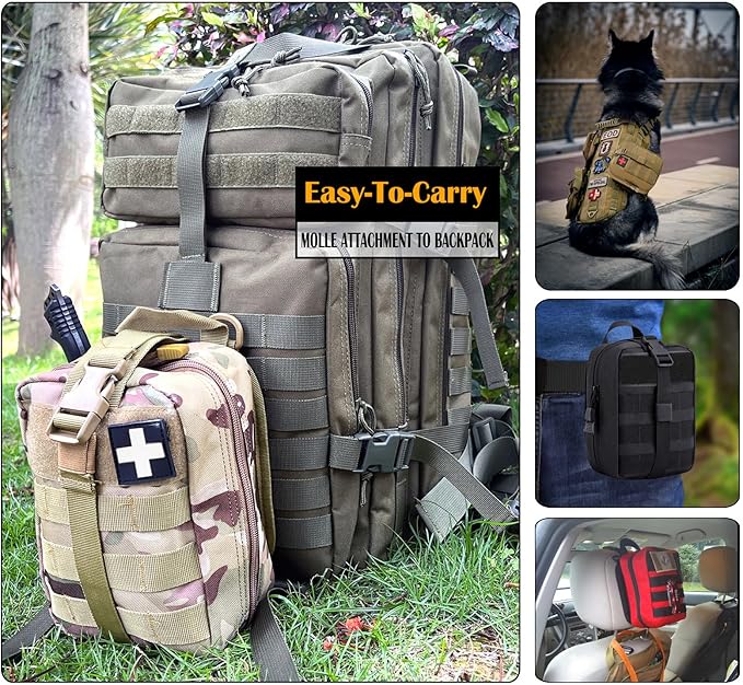 - Great quality:med pouches Made of premium and durable military grade waterproof fabric material and sturdy double stitching, durable MOLLE straps with strong snaps.