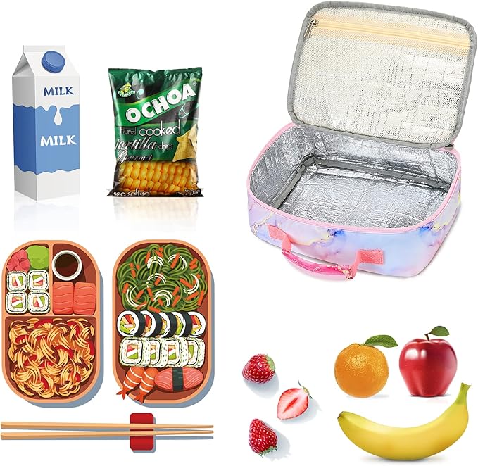 - It's super popular and very classy with beautiful pink marble pattern,The lunchbox bag is leak-proof and friendly to carry on.The bag is suitable perfect for kids, children, girls to school, women to work. You will love to bring this adorable insulated lunch box to school everyday!
