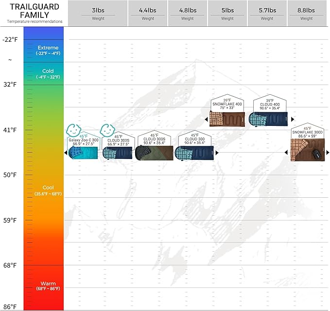 - FOR COLD CLIMATE CONDITIONS: Perfect for temperatures of 32℉ and above, this double sleeping bag keeps you warm on chilly nights. Its spacious design makes it a favorite for family camping, backpacking, or couples. Whether you're car camping or hiking, our sleeping bag for two provides the warmth and space you need for a restful sleep outdoors.
