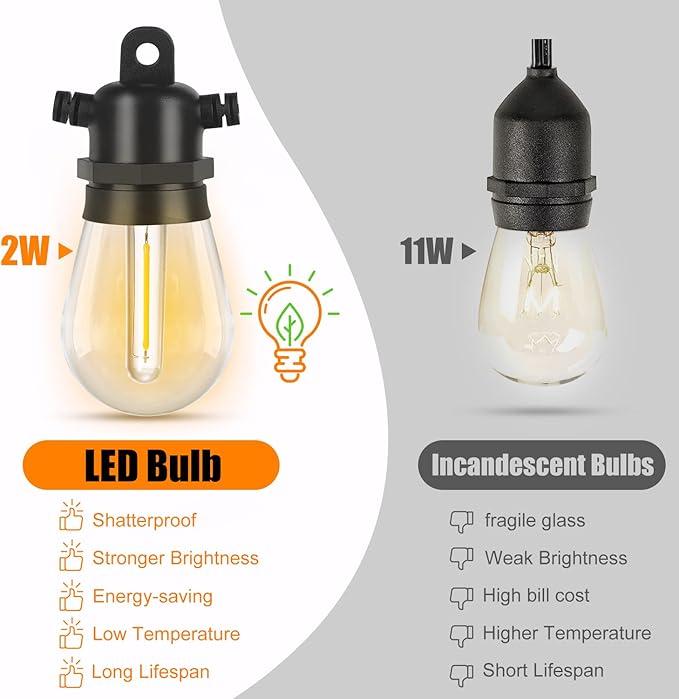 - Long Lasting: With 27 watts of LED lights, these string lights provide bright illumination for up to 54 feet.