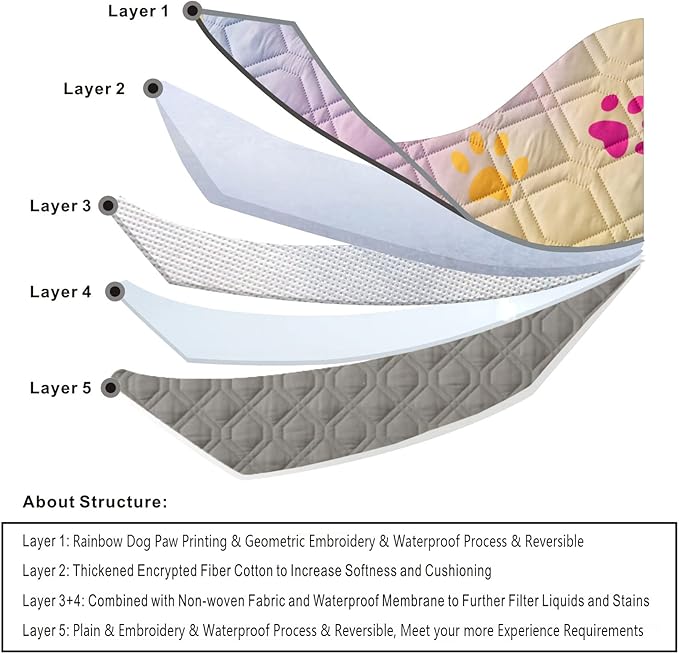 • Made with 5-layer composite coating for waterproof, reversible, reusable, machine washable dog bed cover