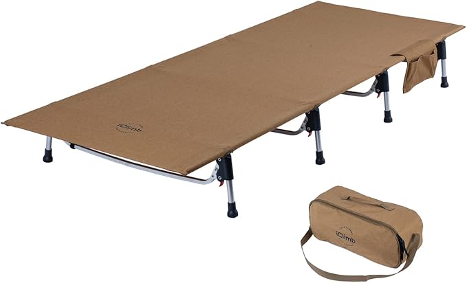 iClimb Super Easy Assemble Folding Cot Ultralight Compact Heavy Duty with Carry Bag for Adults Camping Backpacking (Brown)