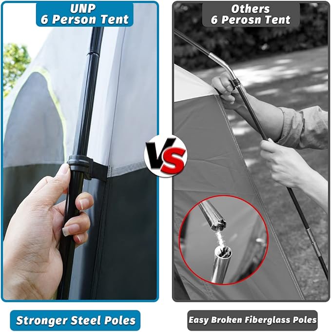 UNP Tents 6 Person Waterproof Windproof Easy Setup,Double Layer Family Camping Tent with 1 Mesh Door & 5 Large Mesh Windows -10'X9'X78in(H)