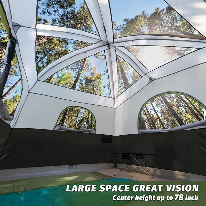 - Breathable Mesh Windows: The camping tent has 1 large mesh door, 5 mesh windows & mesh tent top, which allows the breeze to come in, all the mesh windows offer great views and ventilation