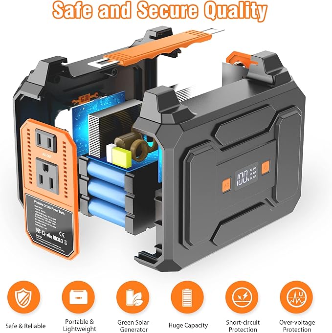 - PORTABLE POWER STATION WITH LARGE CAPACITY - This portable power station with AC outlet 146Wh/39600mAh is powerful enough to charge your devices like laptops, phones, tablets, cameras, drones, fans, in-car appliances. Portable Power Station weights only 3.3lb, fits perfectly in backpack or suitcase, making it a great AC portable charger power bank for camping, hurricanes, emergency, home and outdoor activities.