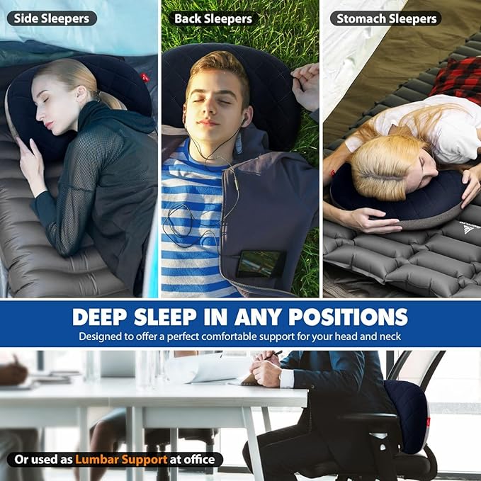 - πππ πππππππ ππ πππππππ πππππππππ ππππππ: Looking for a camping pillow which not only can provide a perfect comfortable support for your neck and head, but also so light and compact to carry on the go? Well, here is your new inflatable pillow. Designed with a soft, breathable cover and ergonomic construction, our backpacking pillow will provide maximum comfort and let you have a restful sleep under stars!