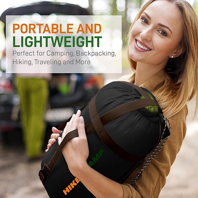 - EASY SETUP & PACKING – Simply unzip the sleeping bag, lay it flat, and adjust the foot area for temperature control. Pack it back into the included compression sack for compact storage.