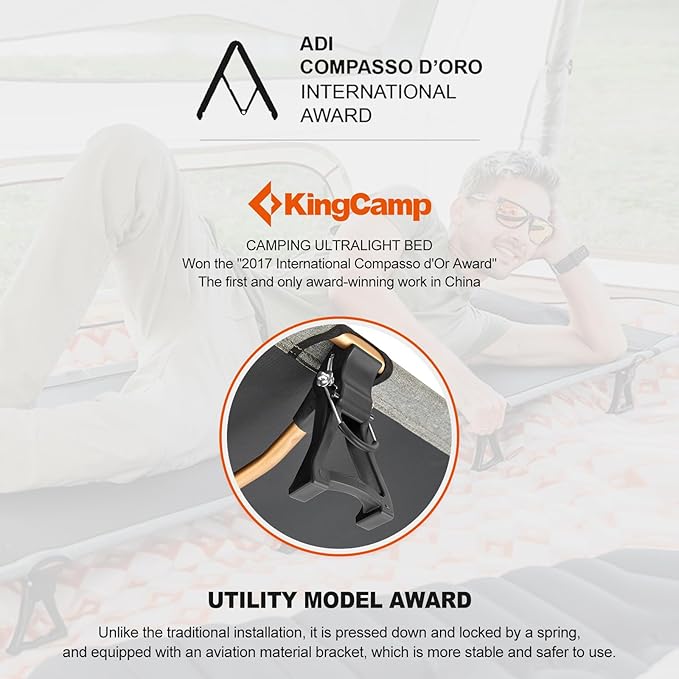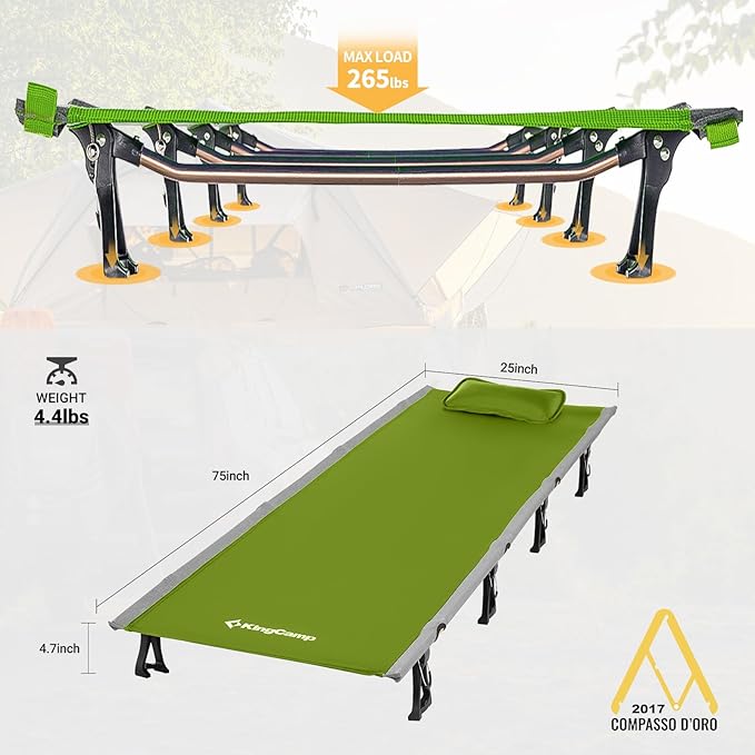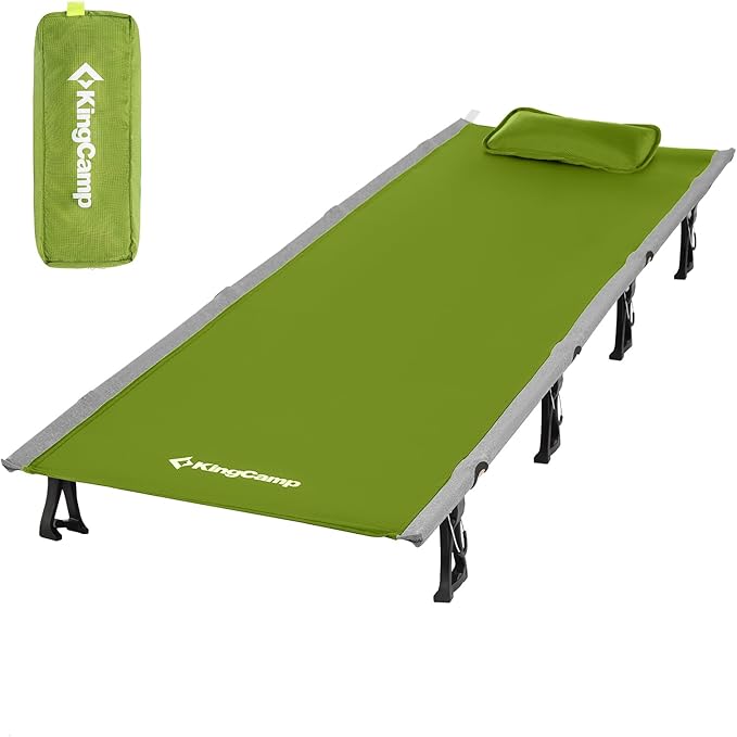 KingCamp Camping Cot, Folding Portable Heavy Duty Ultralight Cots for Adults Camping Tent Hiking Backpacking Mountaineering Travel Indoor Outdoor Indoor Base Camp with Pillow, Support 265 Lbs