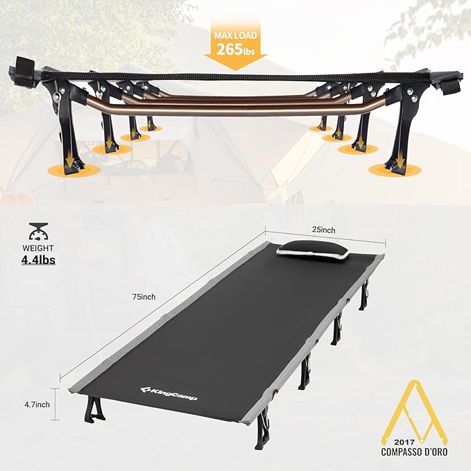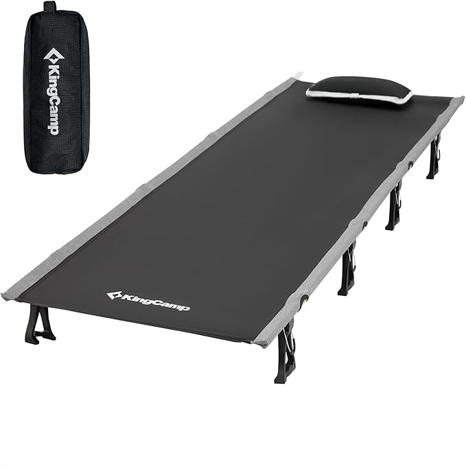 KingCamp Camping Cot, Folding Portable Heavy Duty Ultralight Cots for Adults Camping Tent Hiking Backpacking Mountaineering Travel Indoor Outdoor Indoor Base Camp with Pillow, Support 265 Lbs