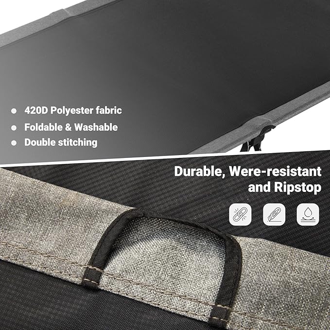 - ★STURDY & HEAVY DUTY: Finished with Aerial aluminum alloy rods and 420D polyester fabric, adding the camp cot to best stability and carrying capacity. It easily supports up to 265 lbs.