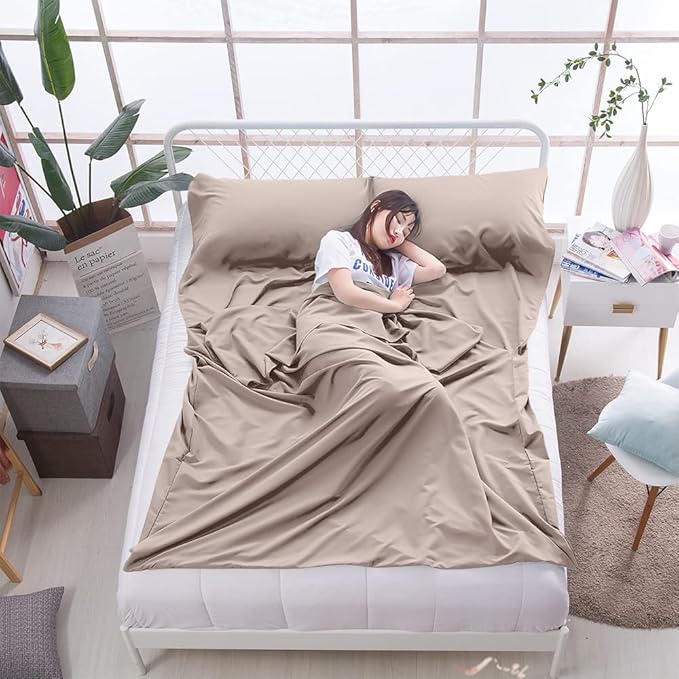 • HUMANIZED DESIGN: The lightweight sleeping travel sheet has two buckles on the top of the sheet,opening on one or two side to make it easy for you to get into. It has an invisible zipper at the bottom for easy ventilation and free movement of your feet.You can open the bottom zipper if you feel hot sleeping in travel sheets.