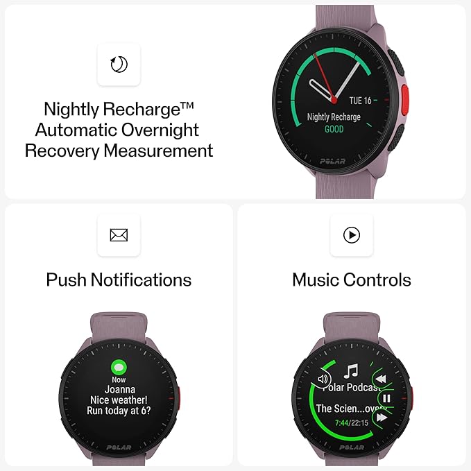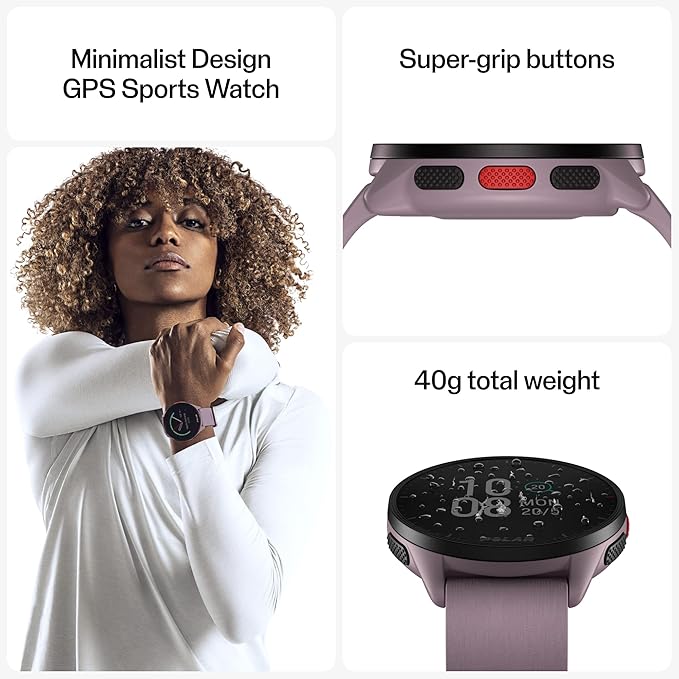 POLAR Pacer Ultra-Light GPS Fitness Tracker Smartwatch for Runners; S-L, for Men or Women, Purple