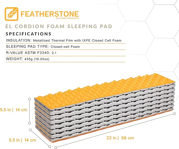 Featherstone Outdoor El Cordion Insulated R-Value 2.1 Sleeping Pad Closed Cell Foam Mat for Ultralight Backpacking Thru-Hiking and Camping