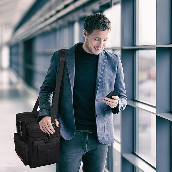 Maelstrom Lunch Box, 23L Insulated Lunch Bag, Expandable Double Deck Cooler Bag, Lightweight Leakproof Tote Bag With Side Tissue Pocket, Suit For Men and Women, Black