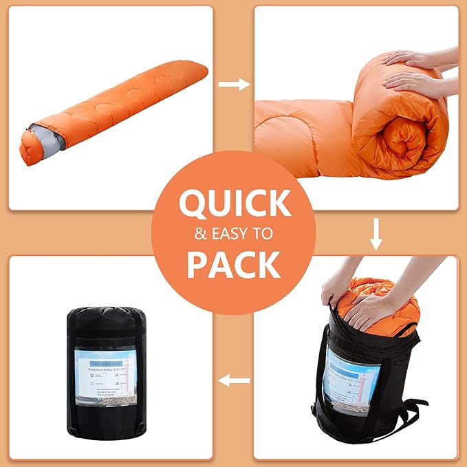 - 【USED FOR 3-4 SEASONS】Our Sleeping Bags can be used for 3-4 seasons.Rated temperature 5(℃)--25(℃).Furthermore,These bags have a waterproof to prevent you from getting damp and keep you warm.You can get a good and relaxing sleep after a tiring day of hiking.A perfect fit for both adults and children. Features an adjustable drawstring.Please note our recommended temperature is for reference only. Different people may have different perception for temperature.