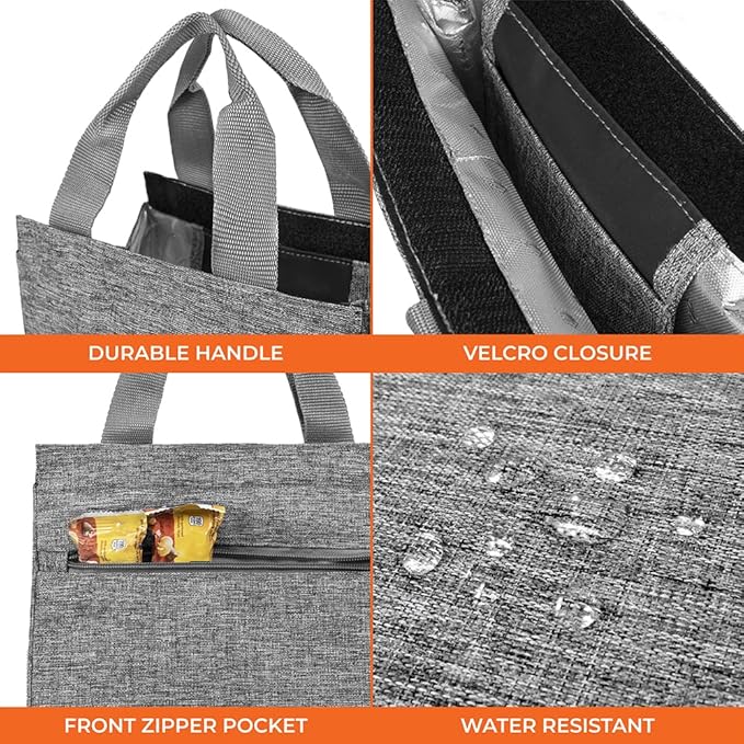 opux Lunch Bag for Women, Insulated Lunch Box Tote for Girls Kids Adult School Work, Reusable Womens Lunch Tote for Office Travel, Cute Small Lunch Tote, Fits 12 Cans - Heather Gray