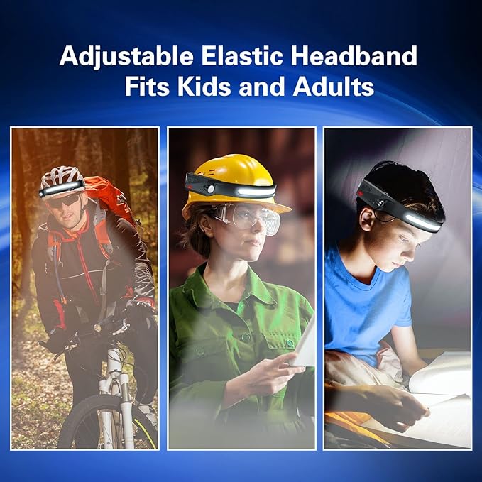 - Super Lightweight & Flexible, Adjustable Comfort: Easy to use, soft head lamp with removable, washable head band only weighs 2.4 oz/ 70 g with built-in 1200 mAh lithium battery. You can feel nothing even wearing this led head band light all day. Head circumference is 20-28 inch, fits adults & kids.