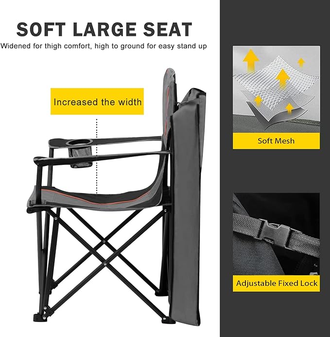 - 【Oversized Folding Chair】: Widened design, more comfortable for your legs. Open Size 36.22’’ X 23.2'' X 55.2''.
