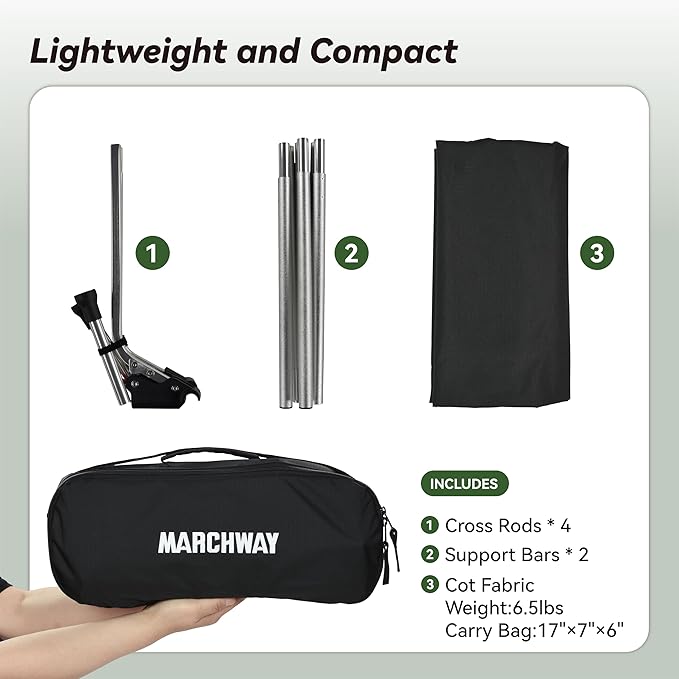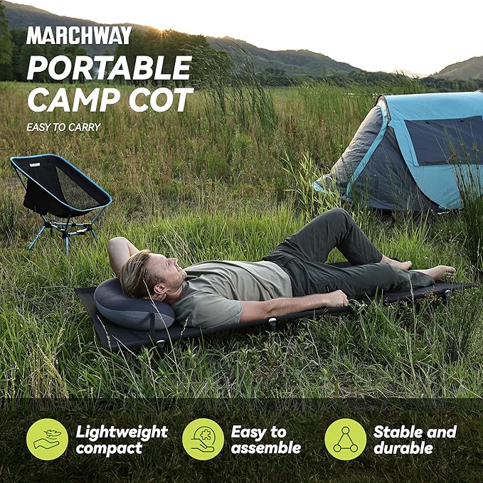 MARCHWAY Lightweight Folding Tent Camping Cot Bed with Lever Lock, Easy Setup Portable Compact for Outdoor Travel, Hunting, Hiking, Motorcycling, Support 330Lbs (Black)