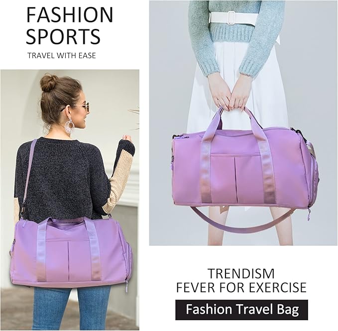 ZGWJ Sports Gym Bag with Wet Pocket & Shoes Compartment, Waterproof Shoulder Weekender Bag for Women and Men Swim Sports Travel Gym Bag Lightweight and easy Carry on Purple