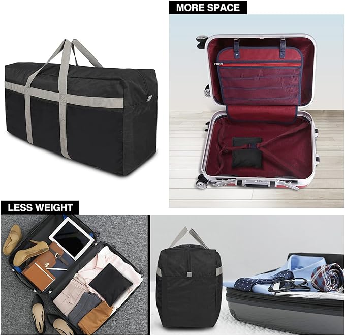 - Easy to Carry: With 2 sturdy handles, you can easily it after storing your items. It can be folded to small size, easy to carry as a "JUST IN CASE" bag for your trip.