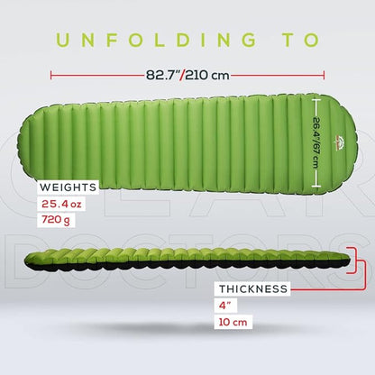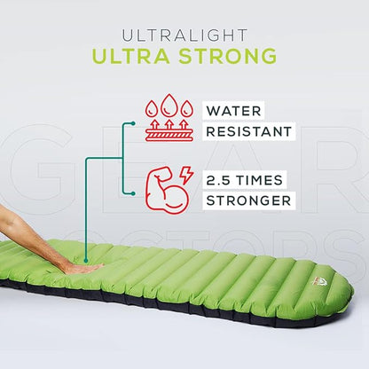 Gear Doctorsยฎ Sleeping Pad for Camping & Backpacking [Ultralight 25oz] - Sleeping Mat Camping - Ultralight Sleeping Pad - Inflatable Sleeping Pad for Camping - Camp Mattress Pad (5.2 R-Value) - Large