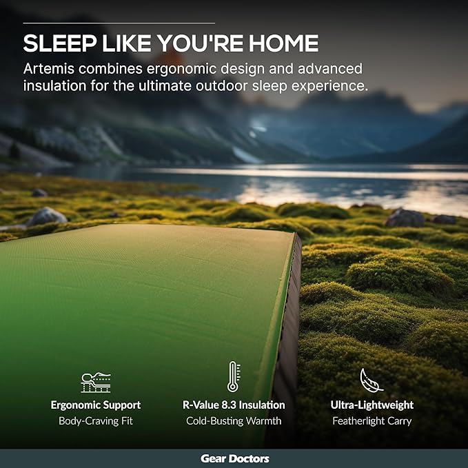 Gear Doctors Artemis 3D Self-Inflating Sleeping Pad – 8.3 R-Value Camping Mattress – Insulated Sleeping Mat for Cold Weather, Backpacking, Hiking, Tent, Outdoor Use