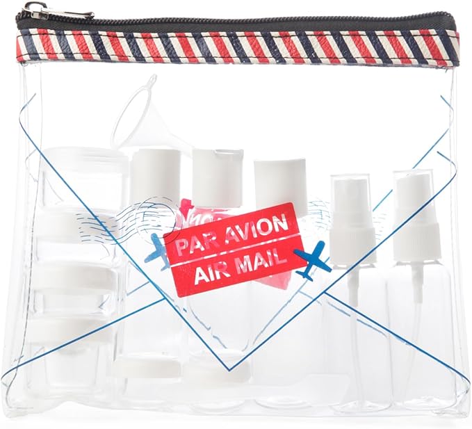 - STYLISH ORGANIZATION – This clear toiletry bag is the perfect combination of style and function. The included spatula and funnel make for easy transferring of beauty products while the labels help you stay organized.