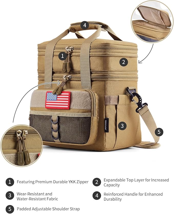 JOYHILL 18 L Tactical Lunch Box - Insulated, Leakproof, and Expandable Double-Deck Cooler Bag for Work, Camping, Picnic - Durable Black Lunch Bag for Adults,24 Can