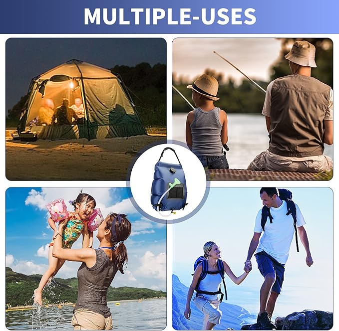 • WIDE RANGE OF USES - This camping showers is suitable for outdoor activities such as camping, backpacking, hiking, fishing or hunting, our portable shower bag is one of the indispensable outdoor equipment accessories for you and your family.It is also the best gift for Father's Day and the perfect camping accessory for men your husband and your children.